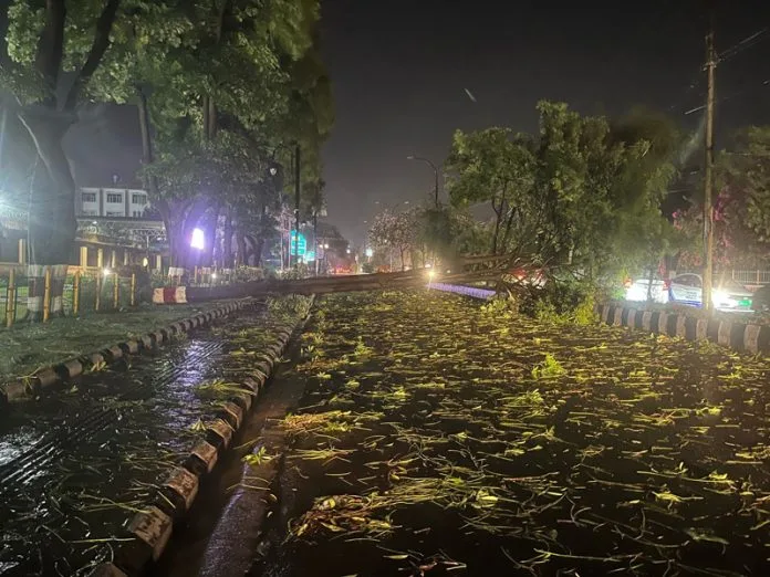 - Trees and electric poles brought down in Green Belt, Gandhi Nagar